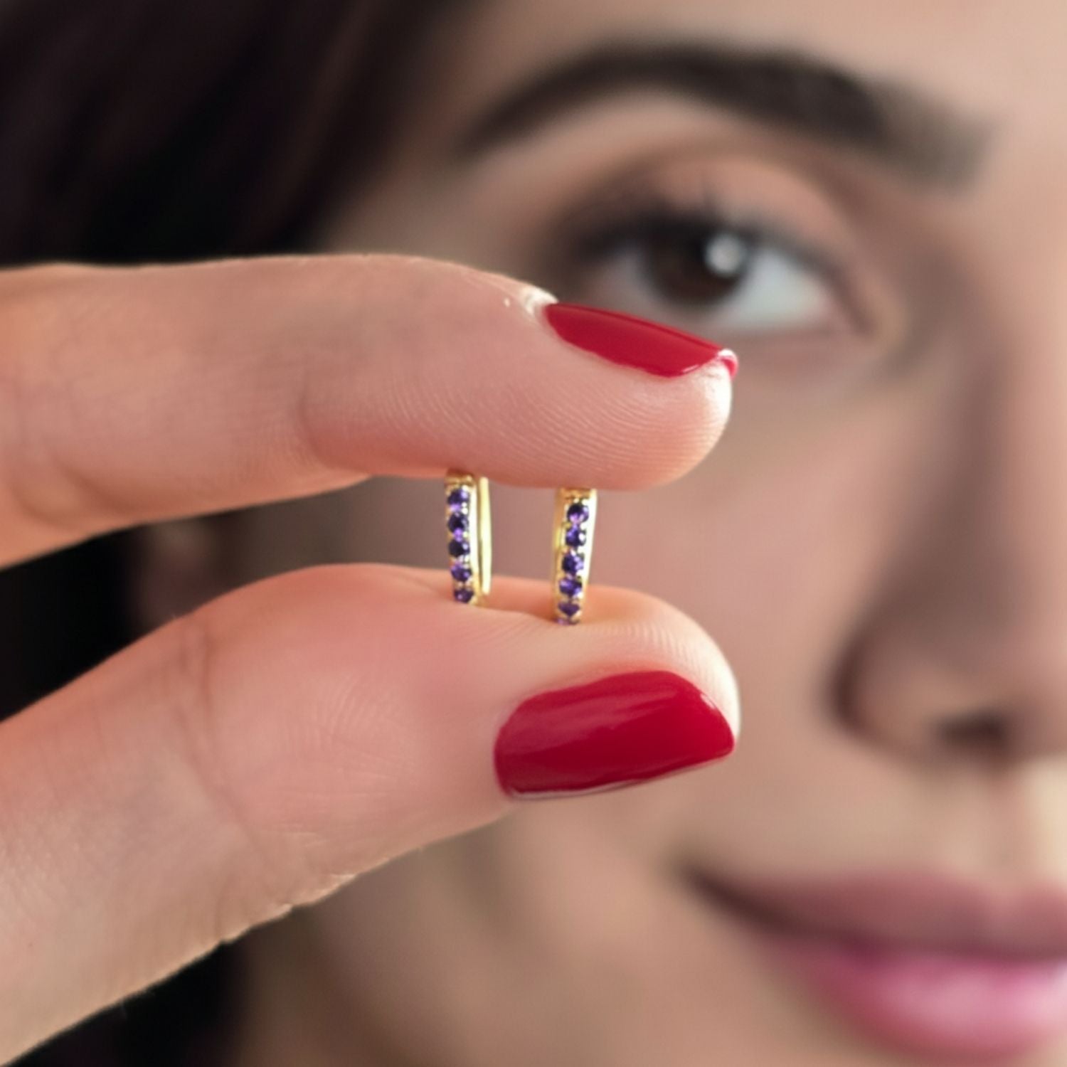 Celebrate February birthdays with our Amethyst Small Huggie Gold Plated Hoop Earrings, designed to symbolise calm, clarity, and protection, featuring vibrant purple amethyst stones in radiant 18ct gold-plated hoops, these elegant huggies add a timeless, meaningful touch to any jewellery collection, arriving in luxury gift packaging, they’re the perfect February birthstone gift for birthdays, anniversaries, or special occasions.
