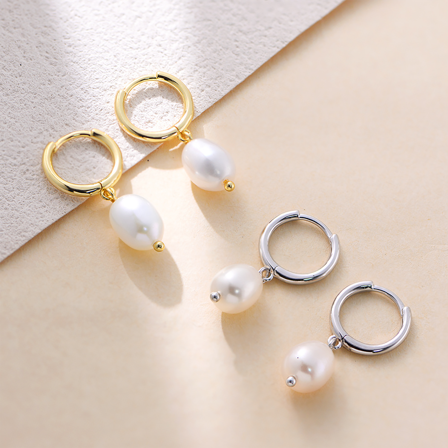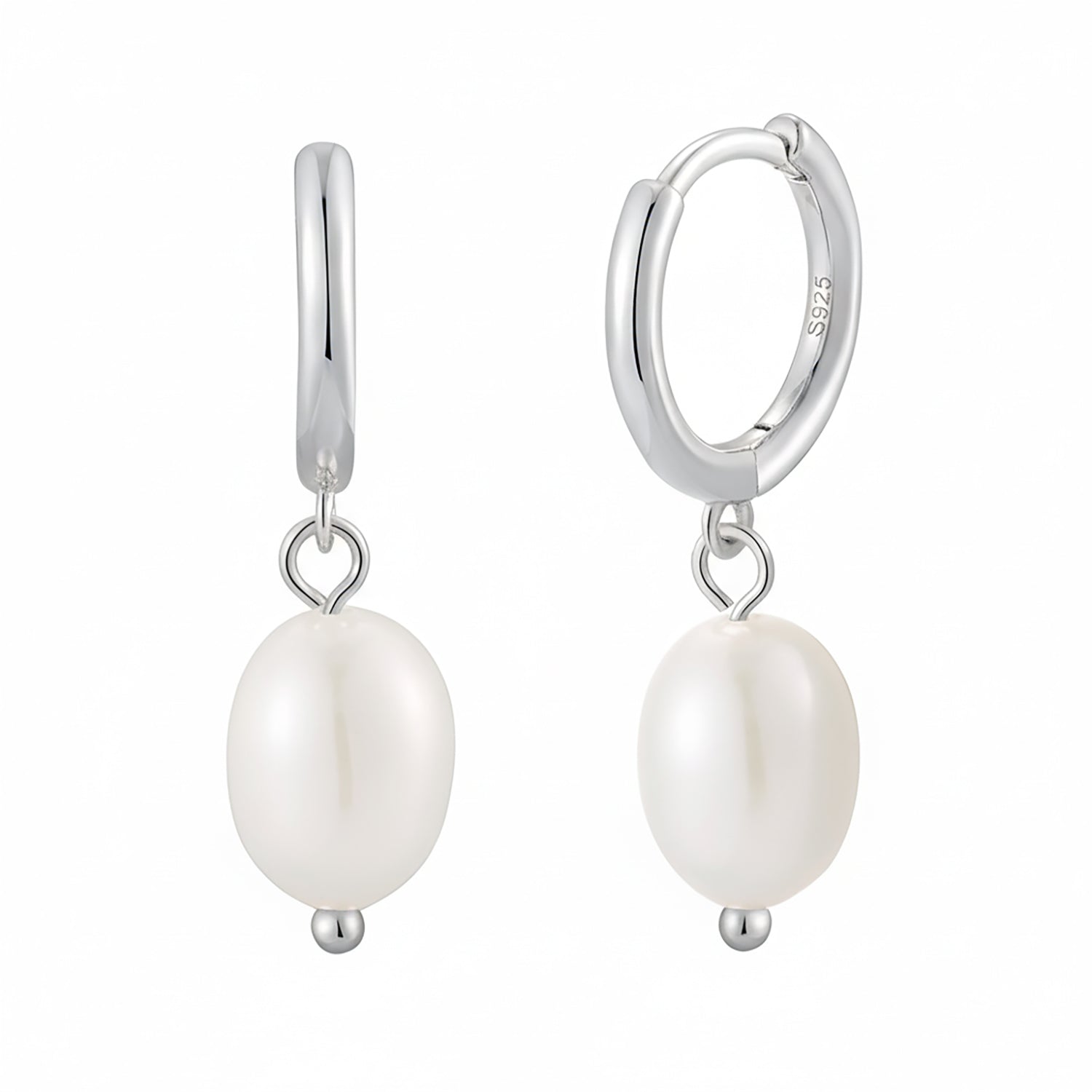 Minimalist Freshwater Pearl Silver Huggie Hoop Earrings