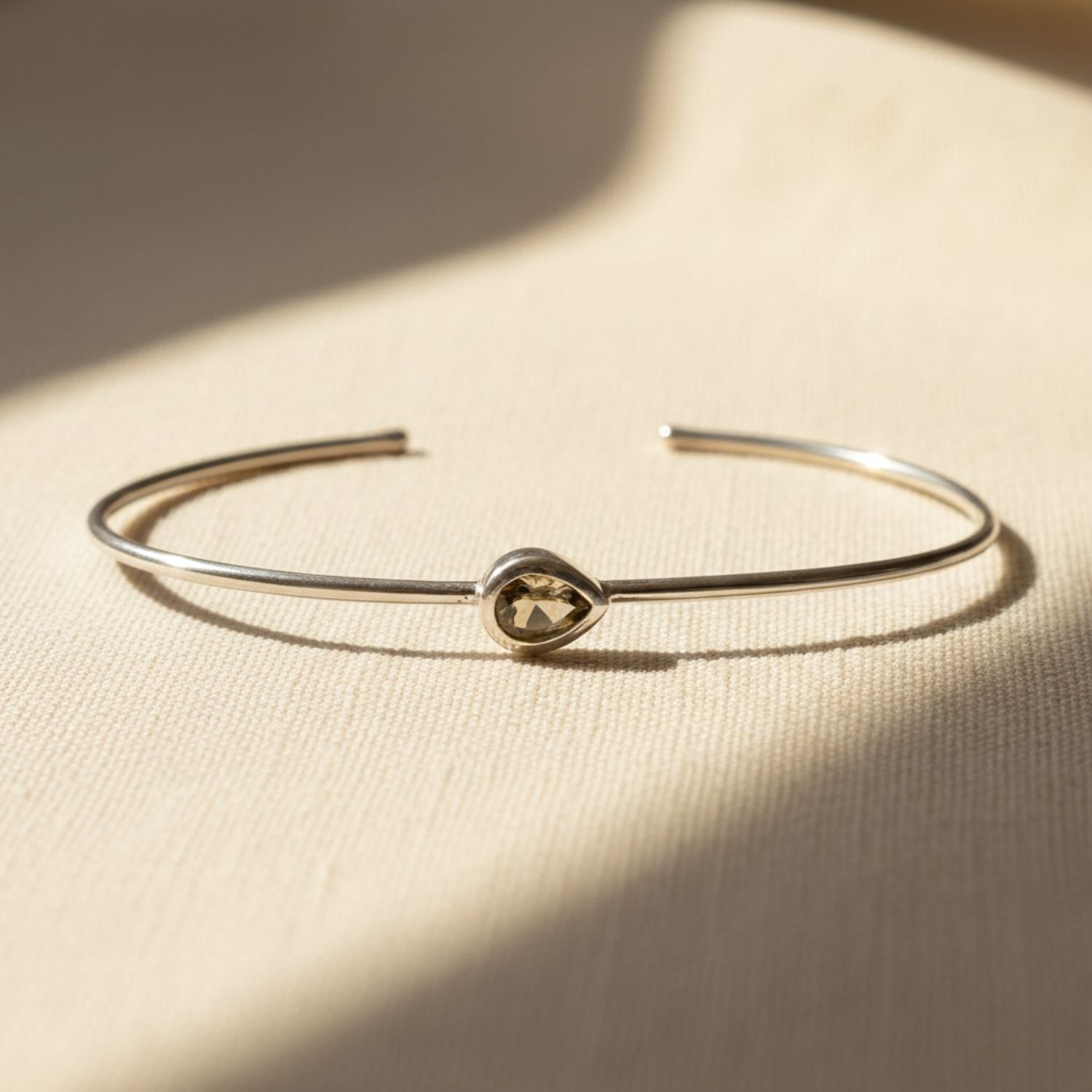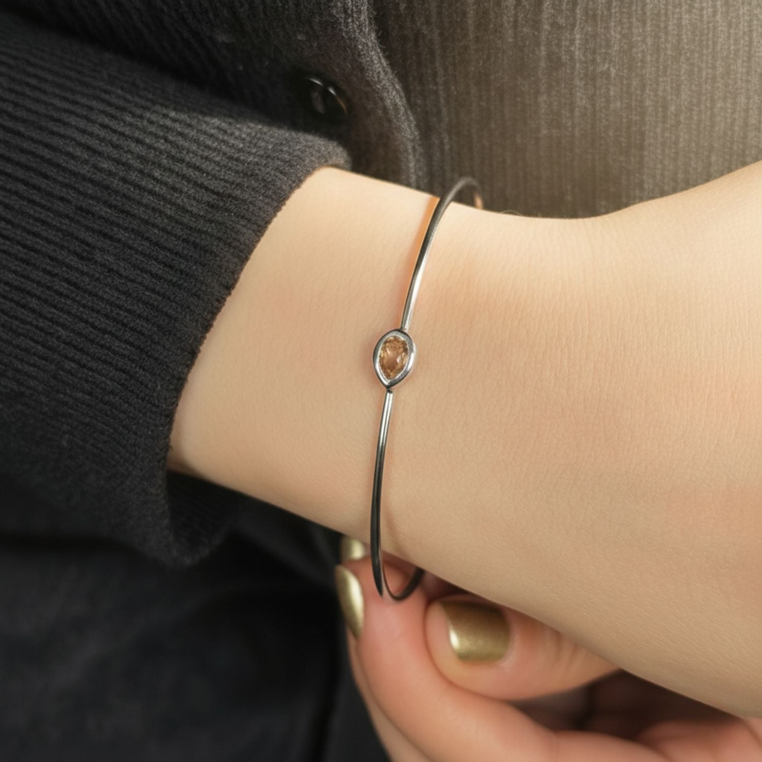 Our Alexandrite June Birthstone Sterling Silver Bangle features a stunning colour-changing stone that shifts from yellow to brown to purple to grey, symbolising balance and transformation. Its timeless, minimalist design makes it perfect for everyday elegance or meaningful layering. Presented in luxury packaging, it makes a thoughtful and personal gift for June birthdays, anniversaries, or special milestones.