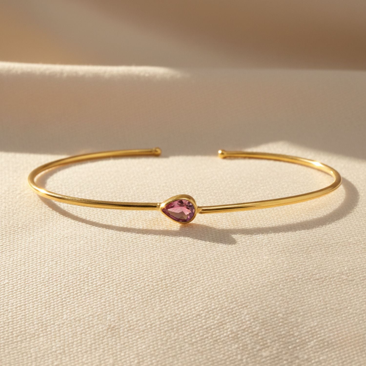 Gold Vermeil Plated Minimalist Ruby July Birthstone Bangle