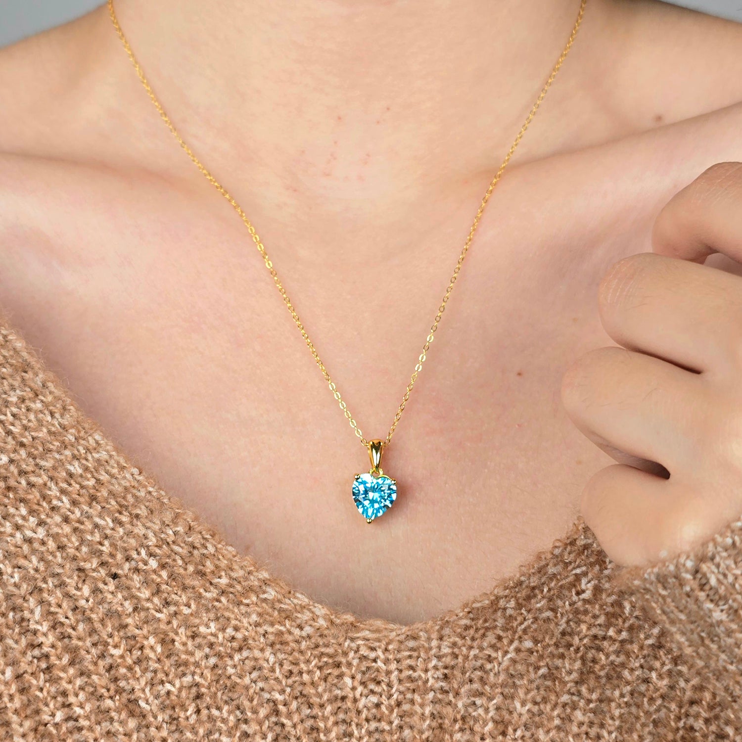 The Blue Topaz Heart Pendant Necklace sparkles with serene brilliance, symbolising peace and protection. December’s birthstone promotes clarity and calm. A thoughtful and elegant gift for someone you truly love. Presented in luxury packaging for a meaningful finishing touch.