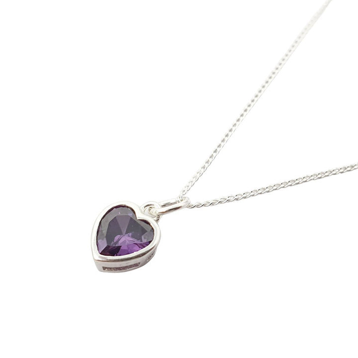 Mini Heart Silver Amethyst February Birthstone Necklace