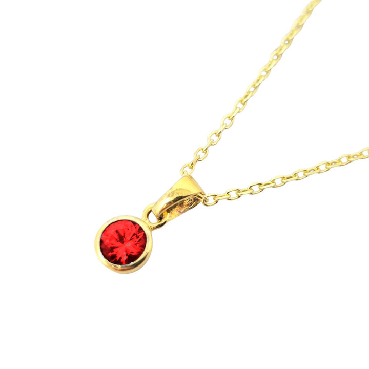 Our Mini Round Garnet January Birthstone Pendant Necklace features a rich garnet gemstone, symbolising passion, strength, and protection.