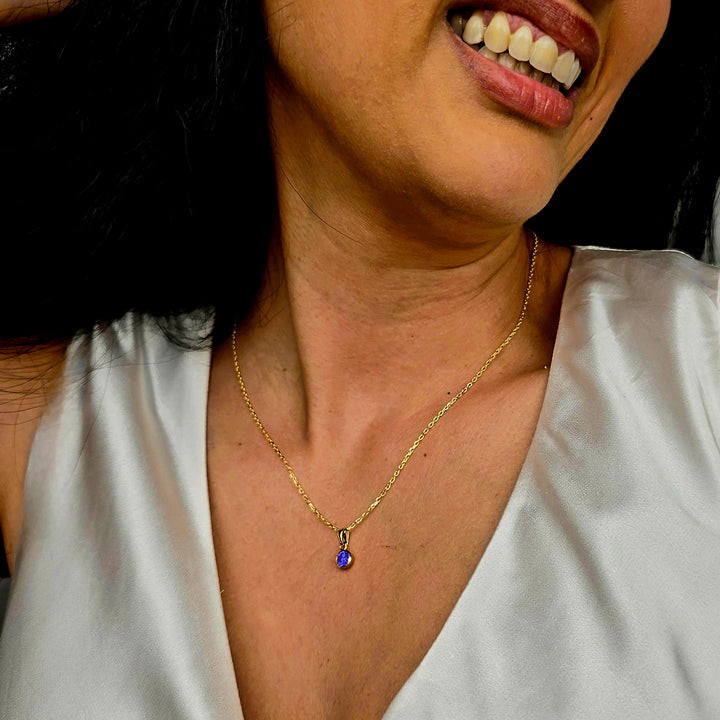 Our Mini Round Sapphire September Birthstone Pendant Necklace features a stunning sapphire gemstone, symbolising wisdom, loyalty, and protection.