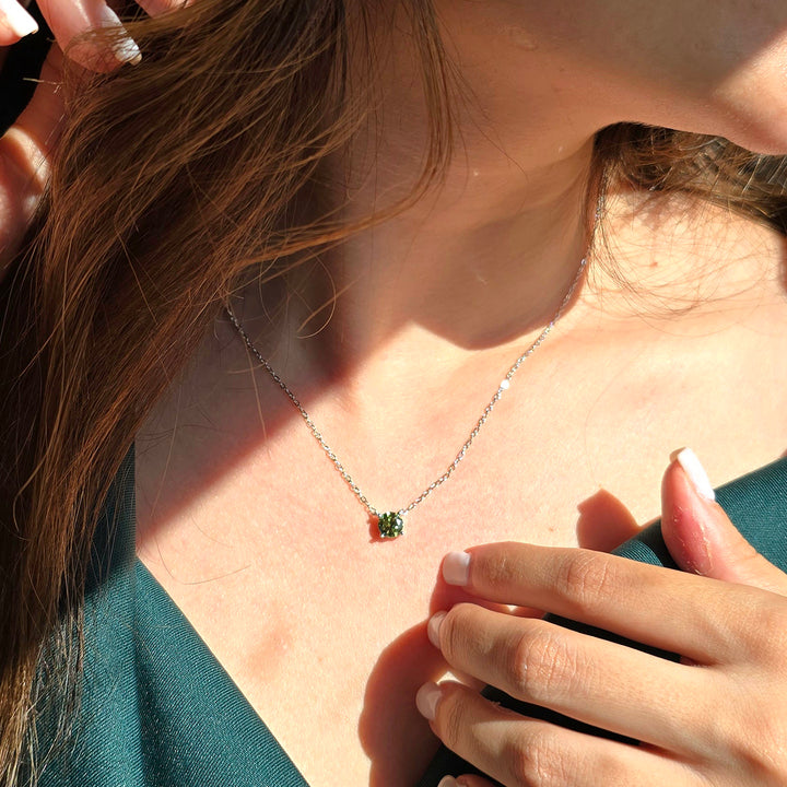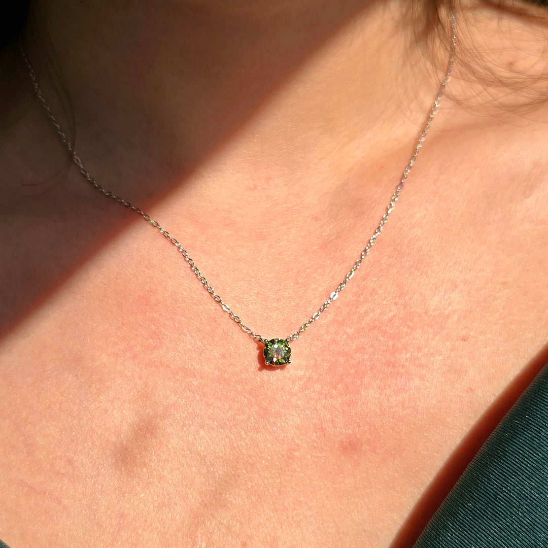 Glowing with the fresh green hue of August’s birthstone, this peridot and moissanite necklace symbolizes renewal, positivity, and prosperity. Delivered in elegant luxury packaging, it’s a thoughtful and uplifting gift that celebrates new beginnings and joyful energy. The 1ct certified moissanite adds a luminous sparkle that complements the vivid charm of peridot.