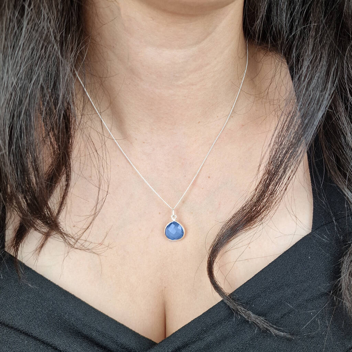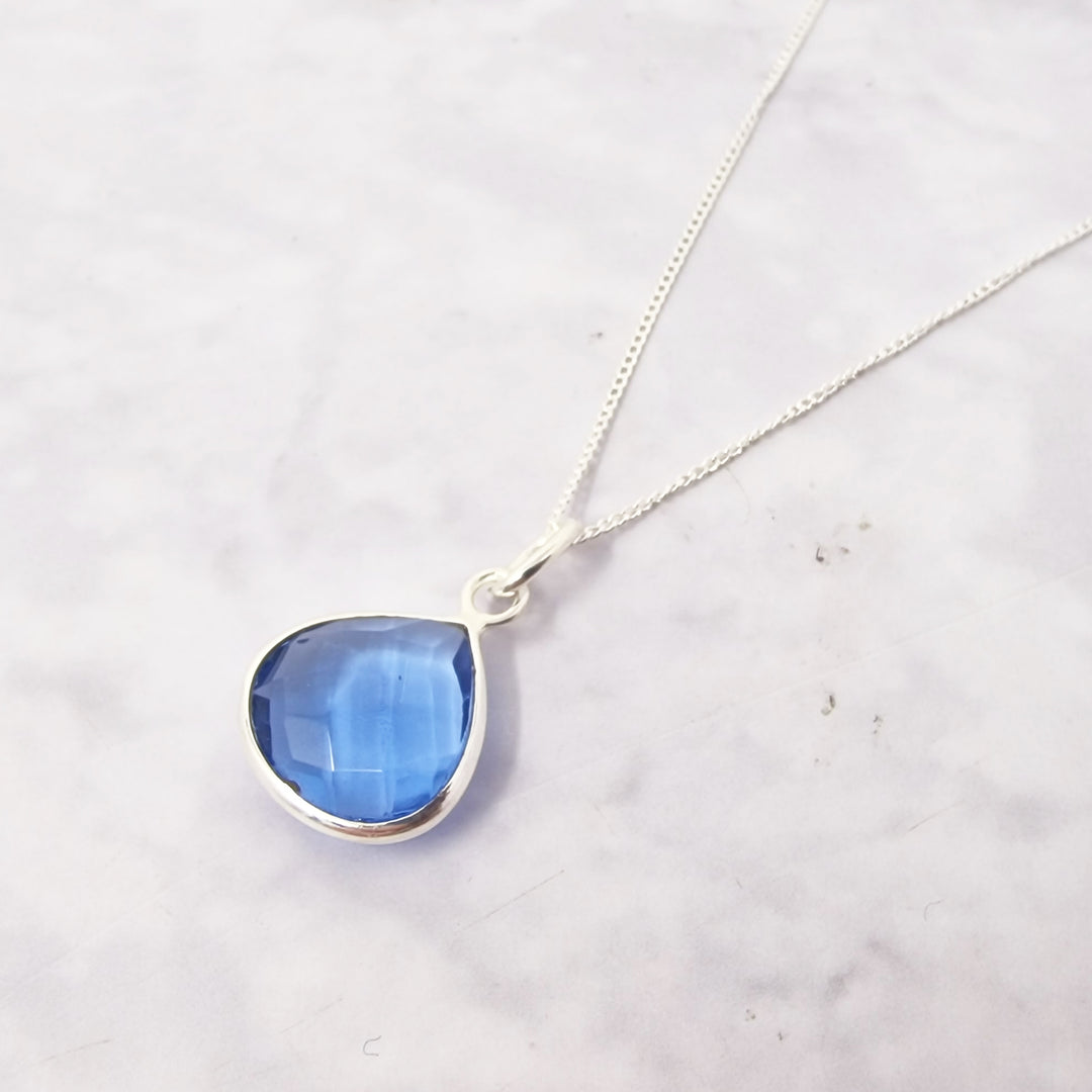 Crafted with care, this necklace features a delicate sterling silver fine chain adorned with a captivating heart-shaped, December birthstone blue topaz pendant.