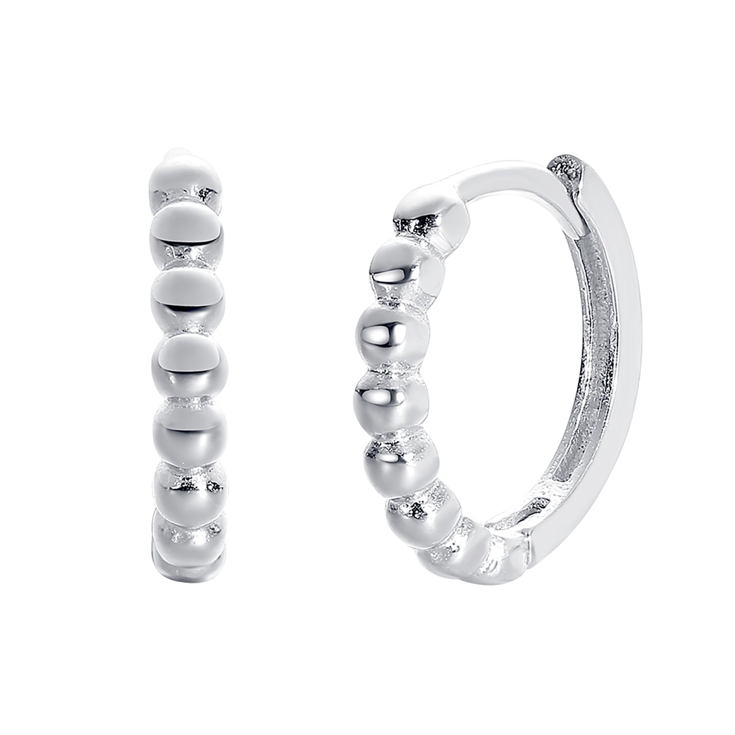 Sterling silver beaded huggie hoops perfect for minimalistic everyday elegance.