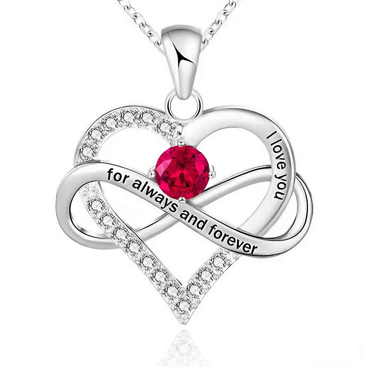 Show your eternal love with this Ruby Heart Necklace, featuring a ruby cz gemstone inside a heart pendant engraved “I love you always and forever.” Rhodium-plated sterling silver adds lasting shine. Arrives in luxury packaging, perfect for gifting.