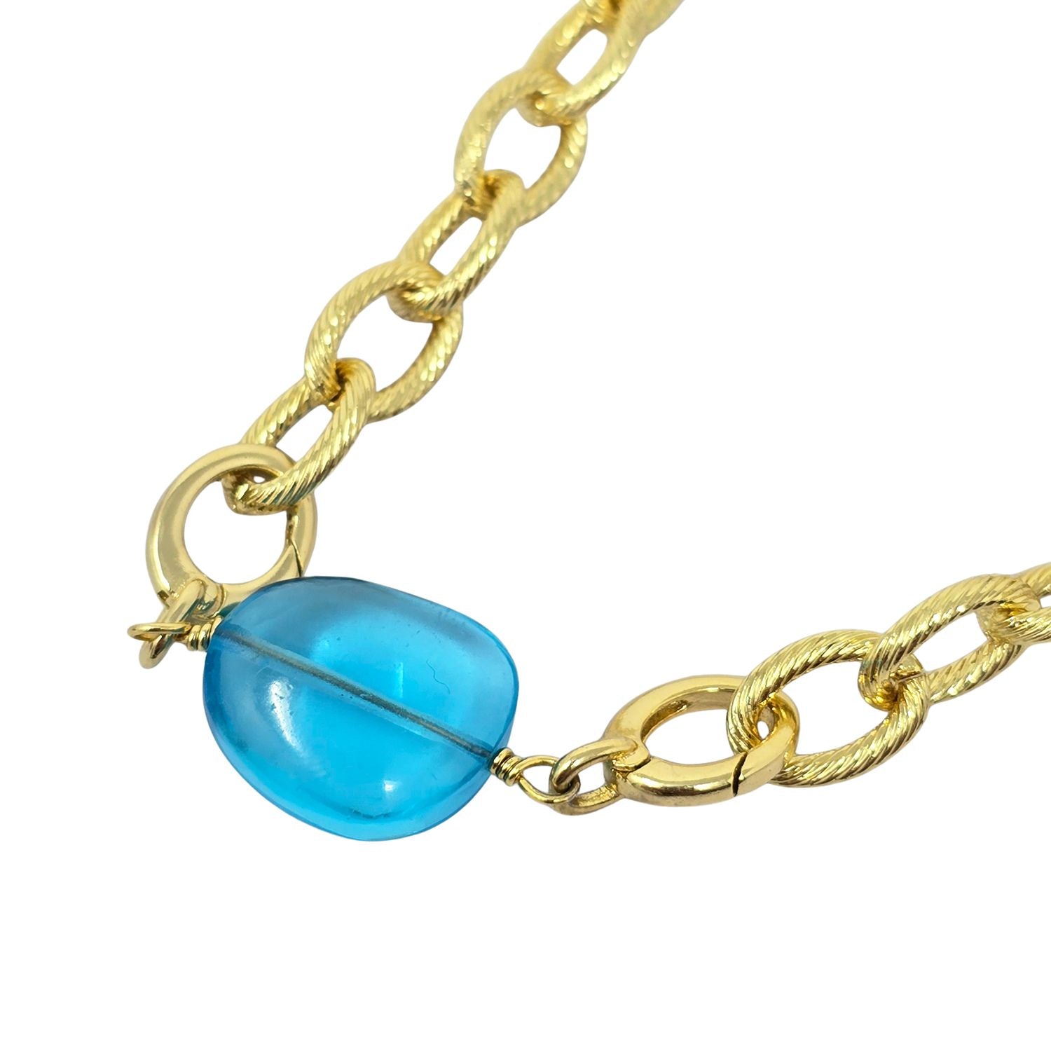 Chain: 18ct gold-plated over brass. Pendant: Blue topaz-effect glass set in gold-plated brass.