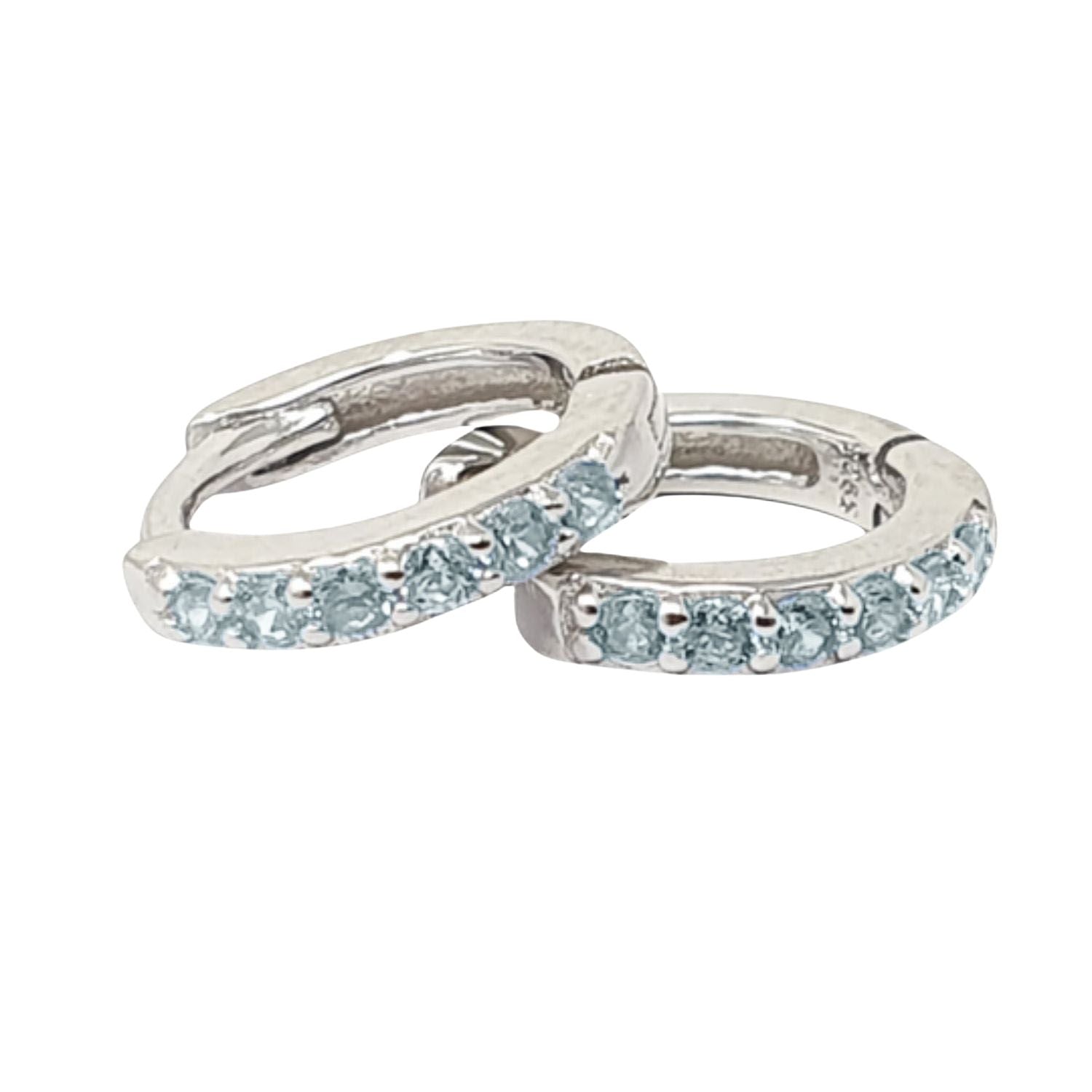 Aquamarine March Birthstone Small Silver Huggie Hoops