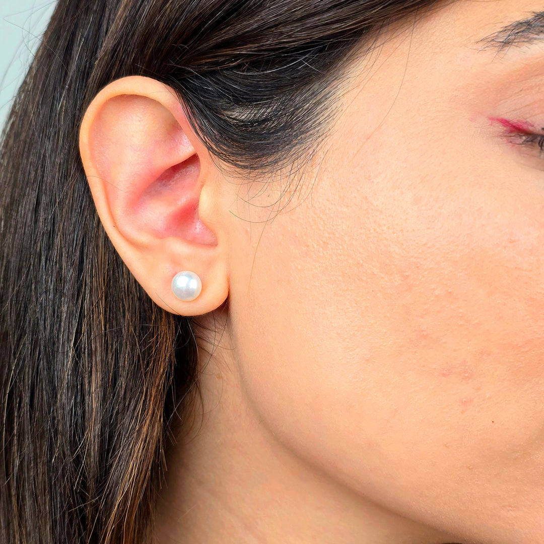 Handpicked freshwater pearl stud earrings with 8mm pearls, crafted in polished sterling silver.