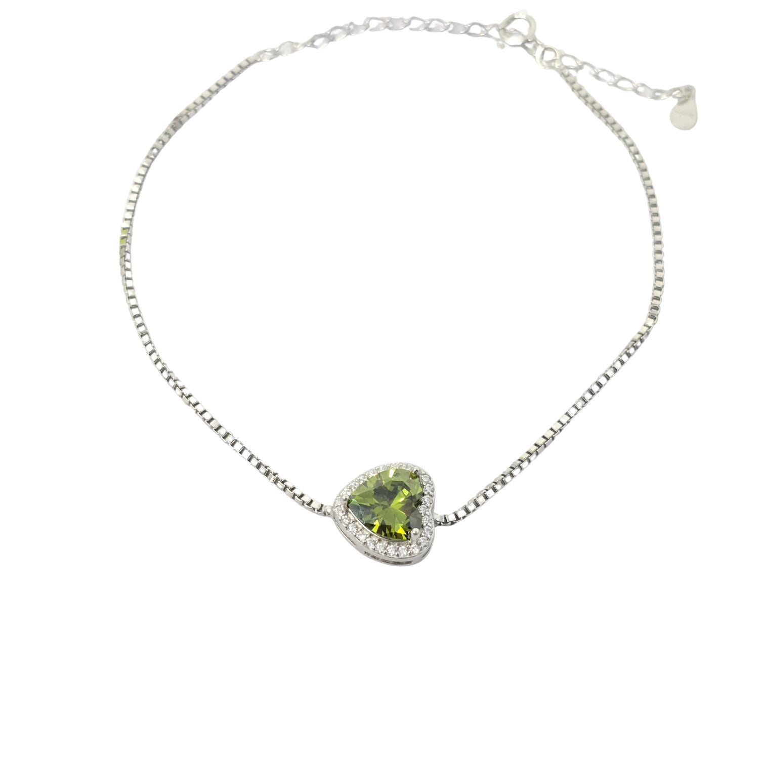 Celebrate August birthdays with our Peridot Love Heart Charm Sterling Silver Bracelet. Featuring a sparkling heart-cut peridot, this elegant piece symbolizes love and connection. A perfect birthday gift, beautifully presented in luxury packaging.
