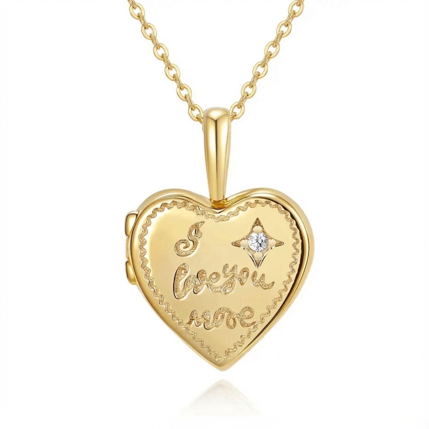 This elegant gold plated heart locket necklace is engraved with the loving message I Love You More, making it a timeless symbol of romance and devotion. The locket opens to hold a cherished photo or keepsake, creating a deeply personal piece to treasure. A perfect gift for anniversaries, birthdays, or Valentine’s Day, it arrives beautifully presented in luxury packaging.