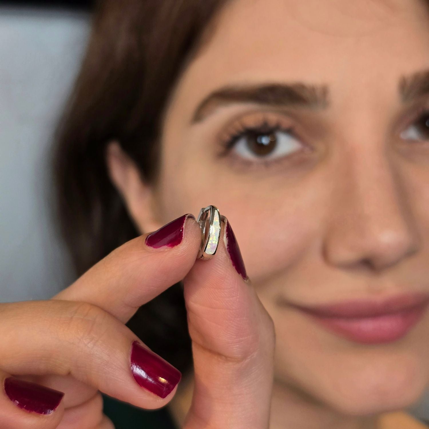 Add subtle elegance with our White Opal Tapered Sterling Silver Huggie Hoop Earrings. Featuring a sleek design and sparkling opal detail, these hoops are perfect for everyday wear or special occasions. A stylish gift, beautifully presented in luxury packaging.