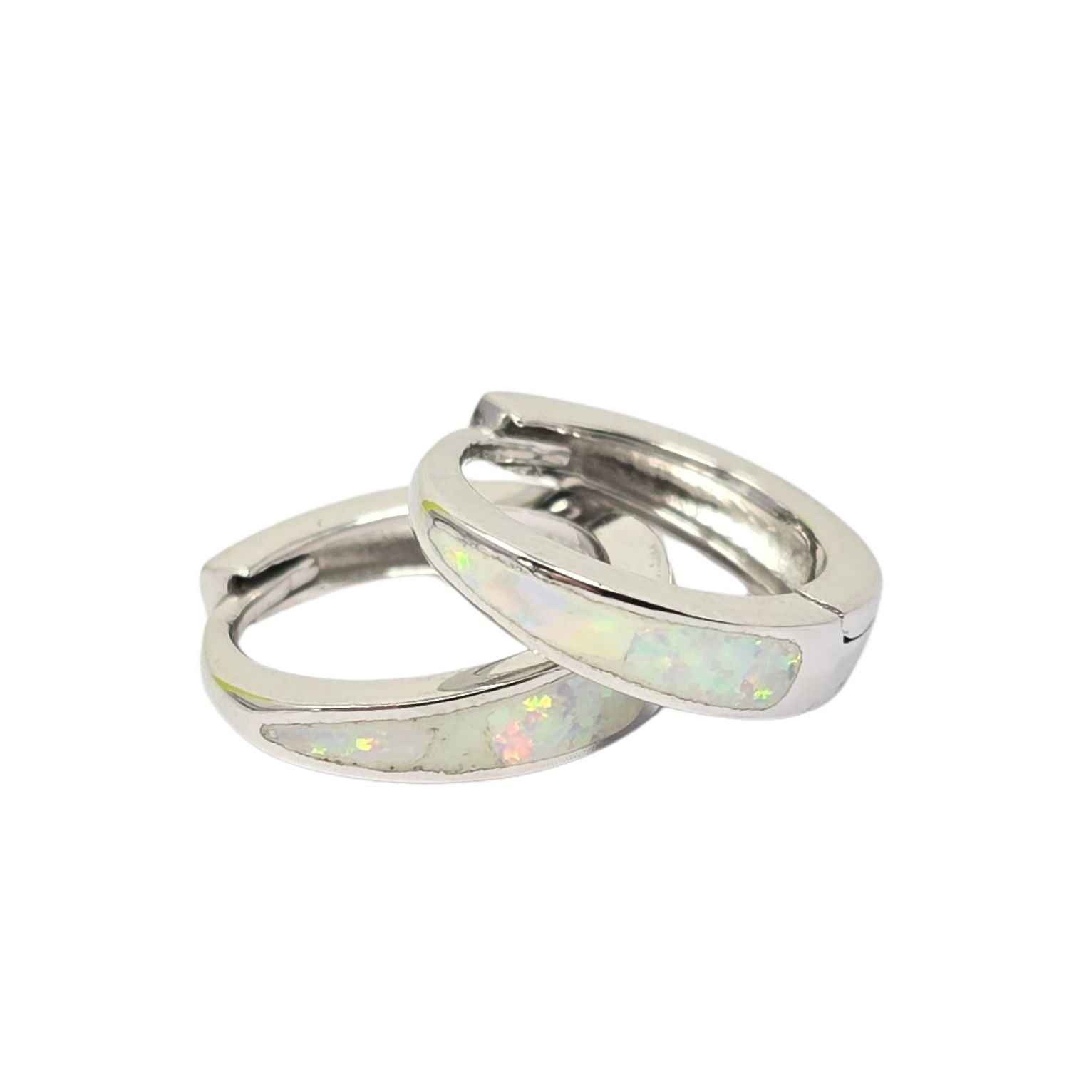 White Opal Tapered Sterling Silver Huggie Hoop Earrings